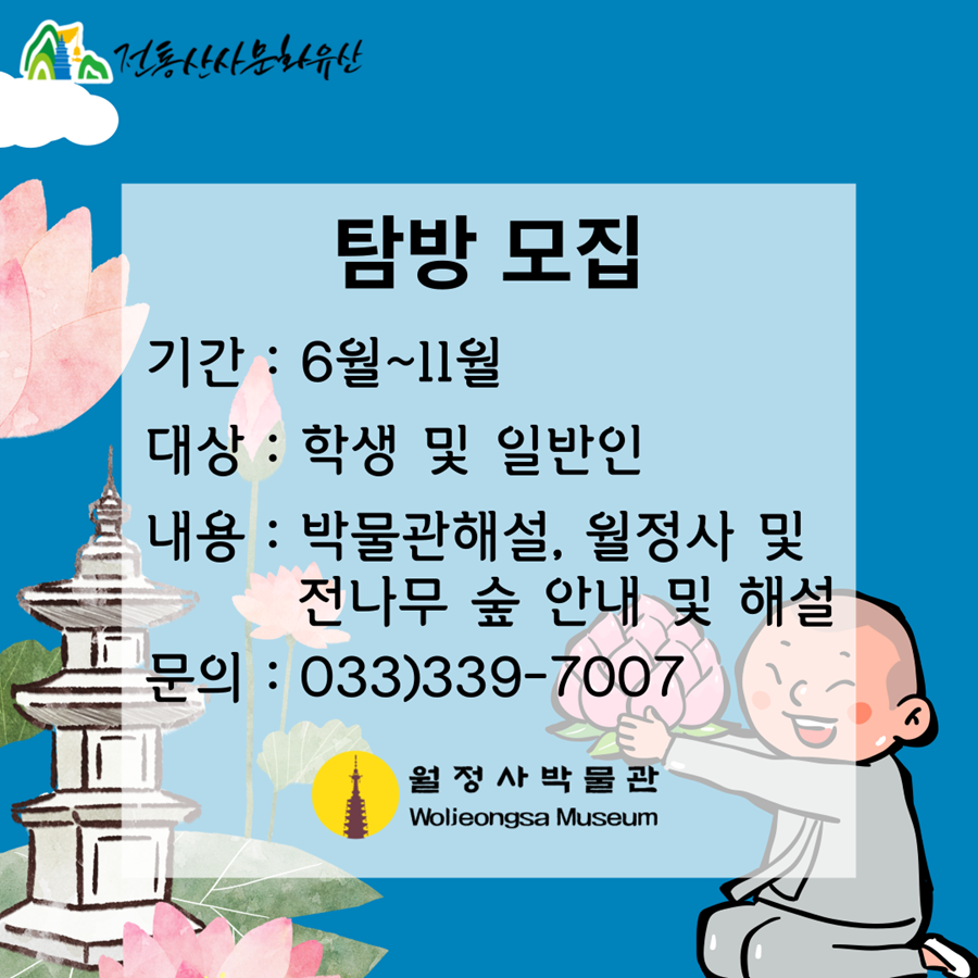 2024 산사문화유산 탐방은 월정사와 전나무 숲길 박물관의 박물관 큐레이터와 함께 둘러 볼 수 있는 프로그램으로 11월까지 신청 가능합니다.