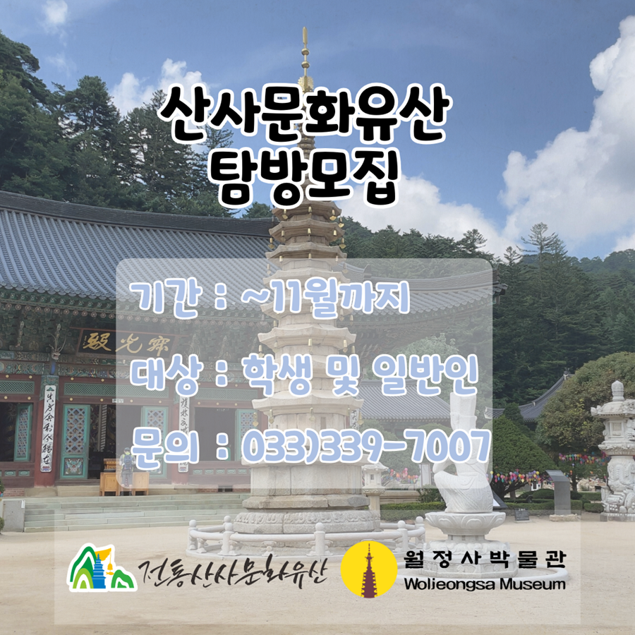 저희 월정사성보박물관에서는 전통산사문화유산의 프로그램으로 월정사와 박물관, 전나무숲길을 같이 탐방하며 안내 및 해설을 해드리고 있습니다.